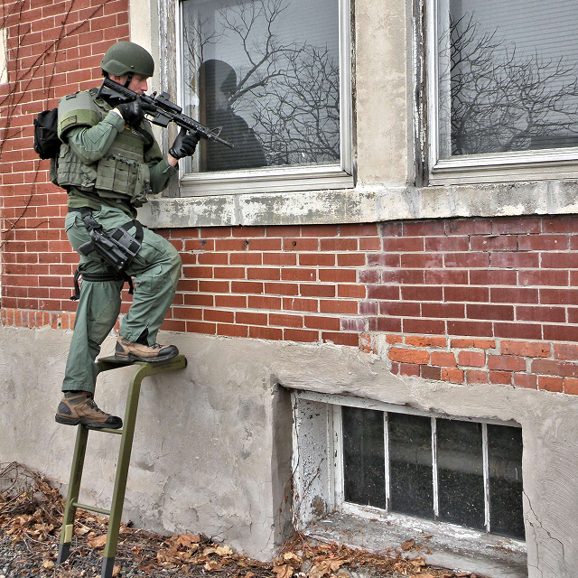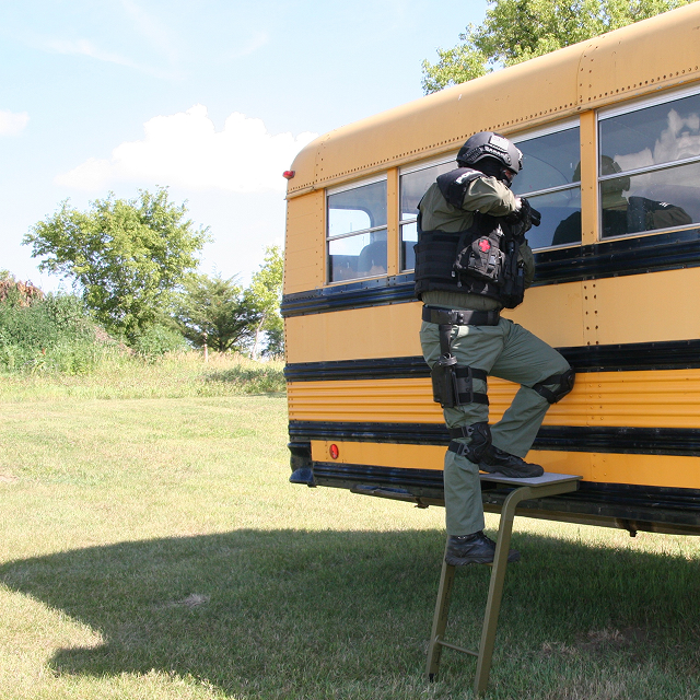 This kit is available either as a stand-alone bus assault ladder (comprised of a single ladder segment and the platform), or as an add-on to the standard full-length ladder.