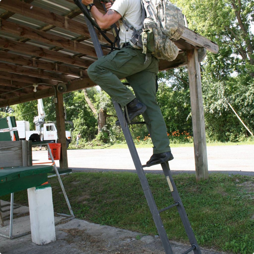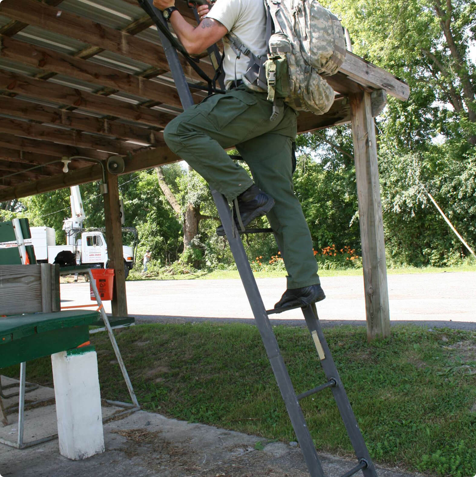 The swiveling joint allows the foot to articulate freely, ensuring the entire surface area remains in continuous contact with the ground, regardless of the terrain angle or the ladder's deployed pitch.